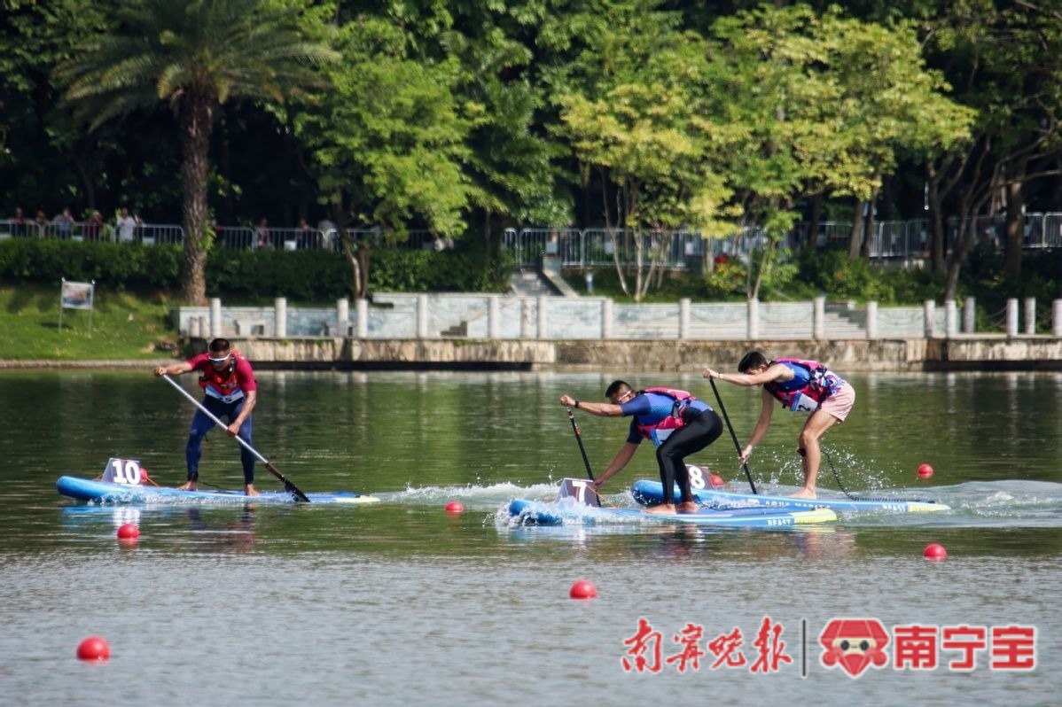 10月3日,南宁南湖公园水域继续上演精彩的水上运动项目竞技。来自国内外约700名选手轮番挥桨竞速,角逐2025中国—东盟国际桨板公开赛暨中国桨板俱乐部联赛(南宁站)各组别名次。